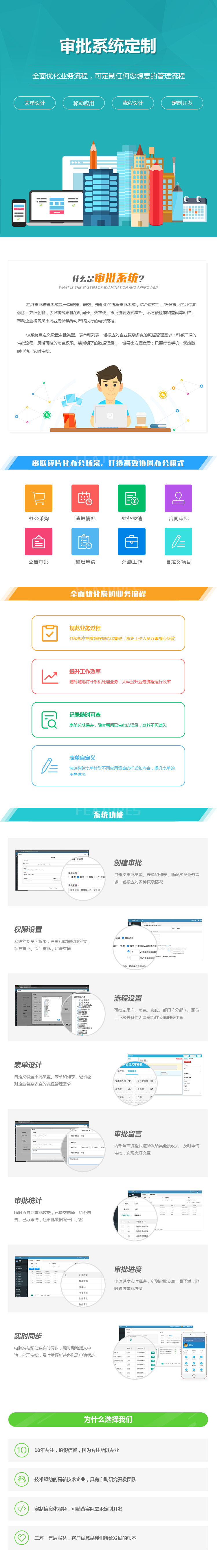 该系统自定义设置审批类型、表单和列表,轻松应对企业复杂多变的流程管理需求;科学严谨的审批流程、灵活可控的角色权限、清晰明了的数据记录,一键导出方便查看;只要带着手机,就能随时申请、实时审批。